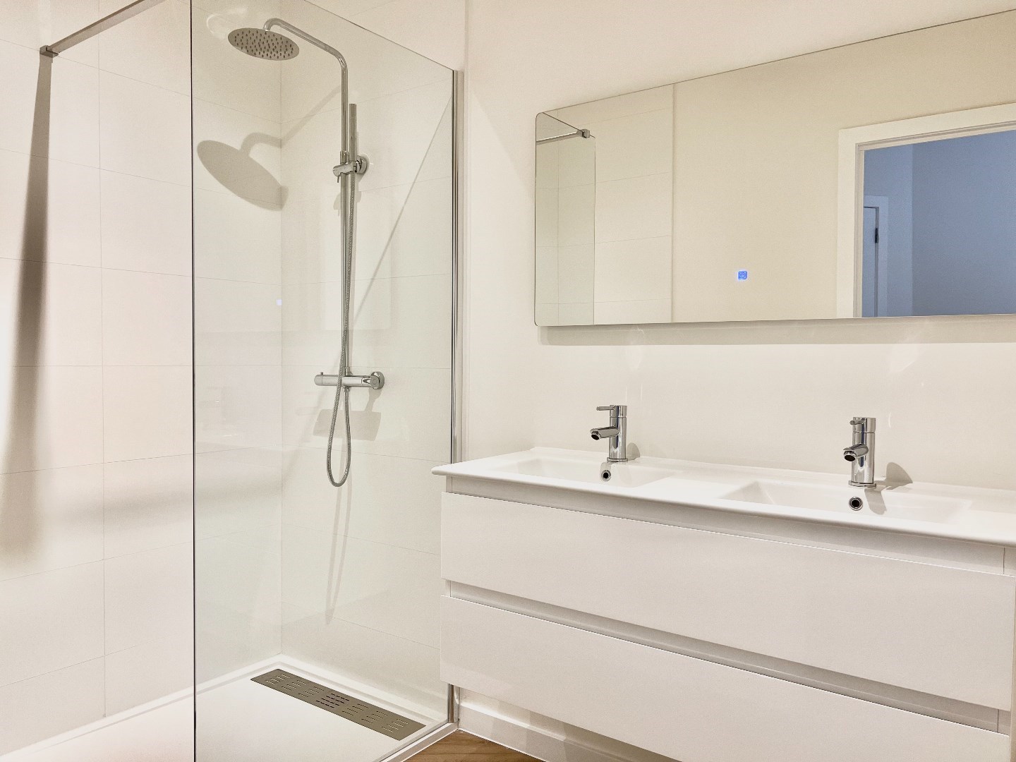 2 ruime slaapkamers, badkamer met douche en dubbele lavabo.