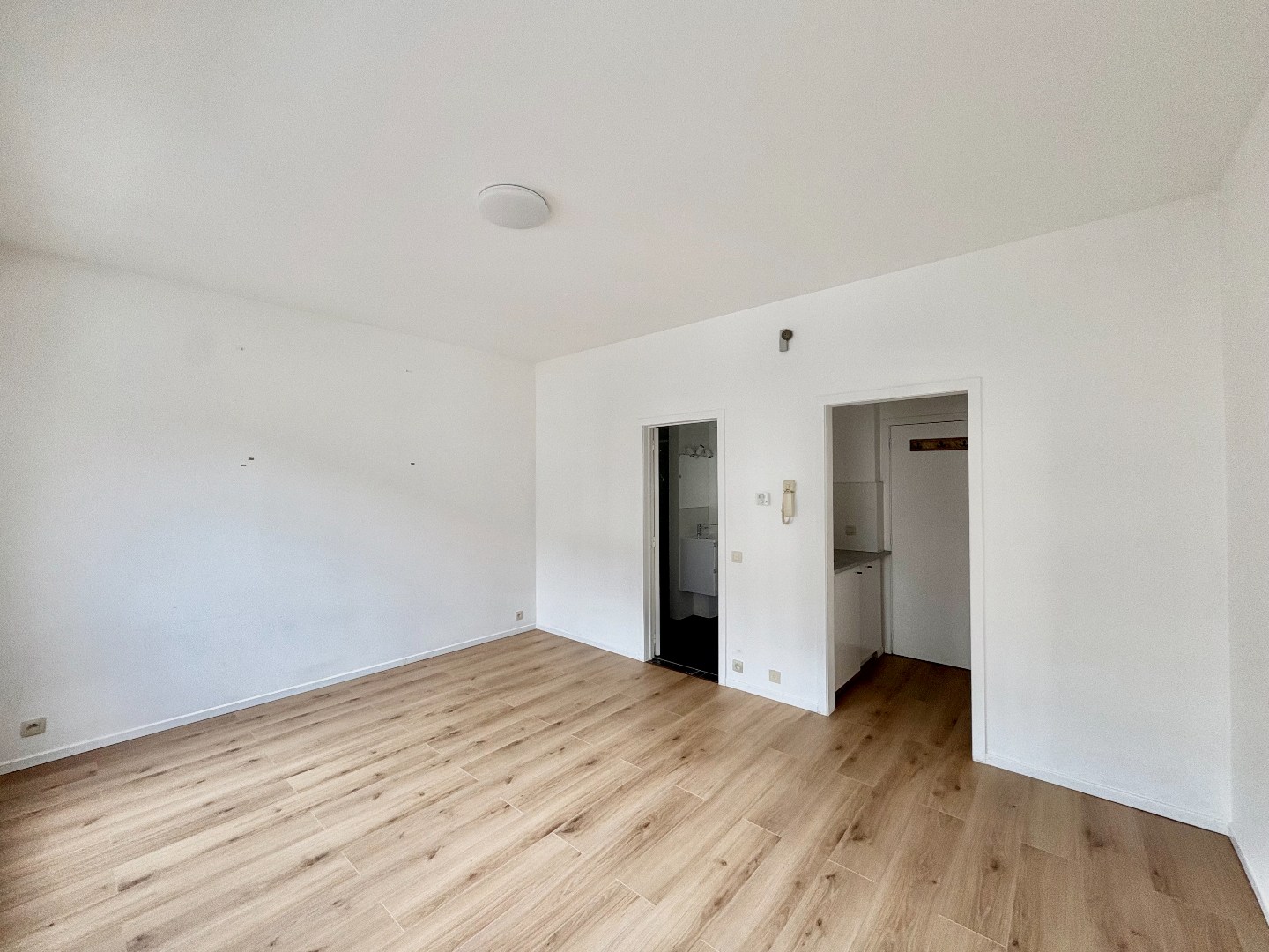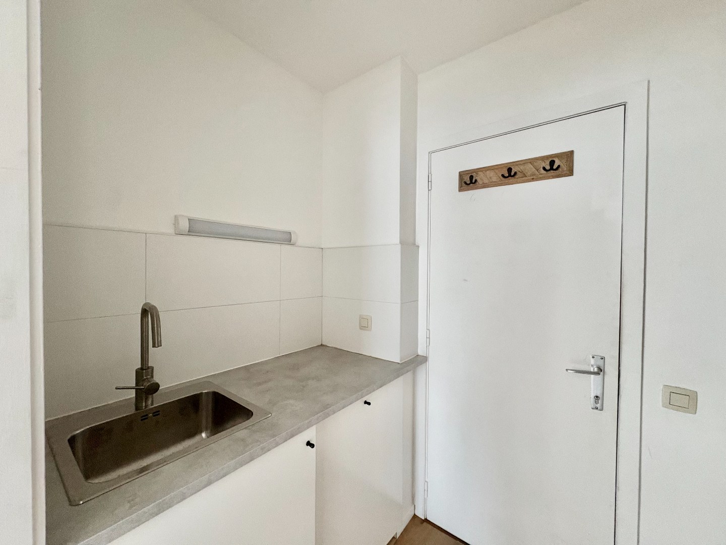 De studio heeft een oppervlakte van 32 m² en is praktisch ingedeeld. Ze bestaat uit een lichtrijke leefruimte met open keuken, een aparte badkamer uitgerust met douche, toilet én aansluiting voor een wasmachine.