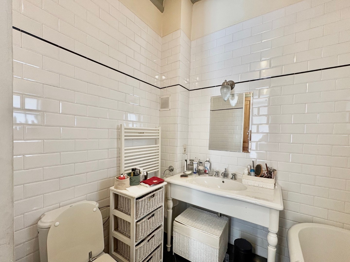 Het appartement beschikt over twee slaapkamers. De eerste slaapkamer heeft een aansluitende badkamer met bad, terwijl de tweede slaapkamer toegang biedt tot een aangenaam terras, en bovendien voorzien is van een dressing en een eigen badkamer met bad. Verder is er een apart toilet en een praktische berging met aansluiting voor een wasmachine.