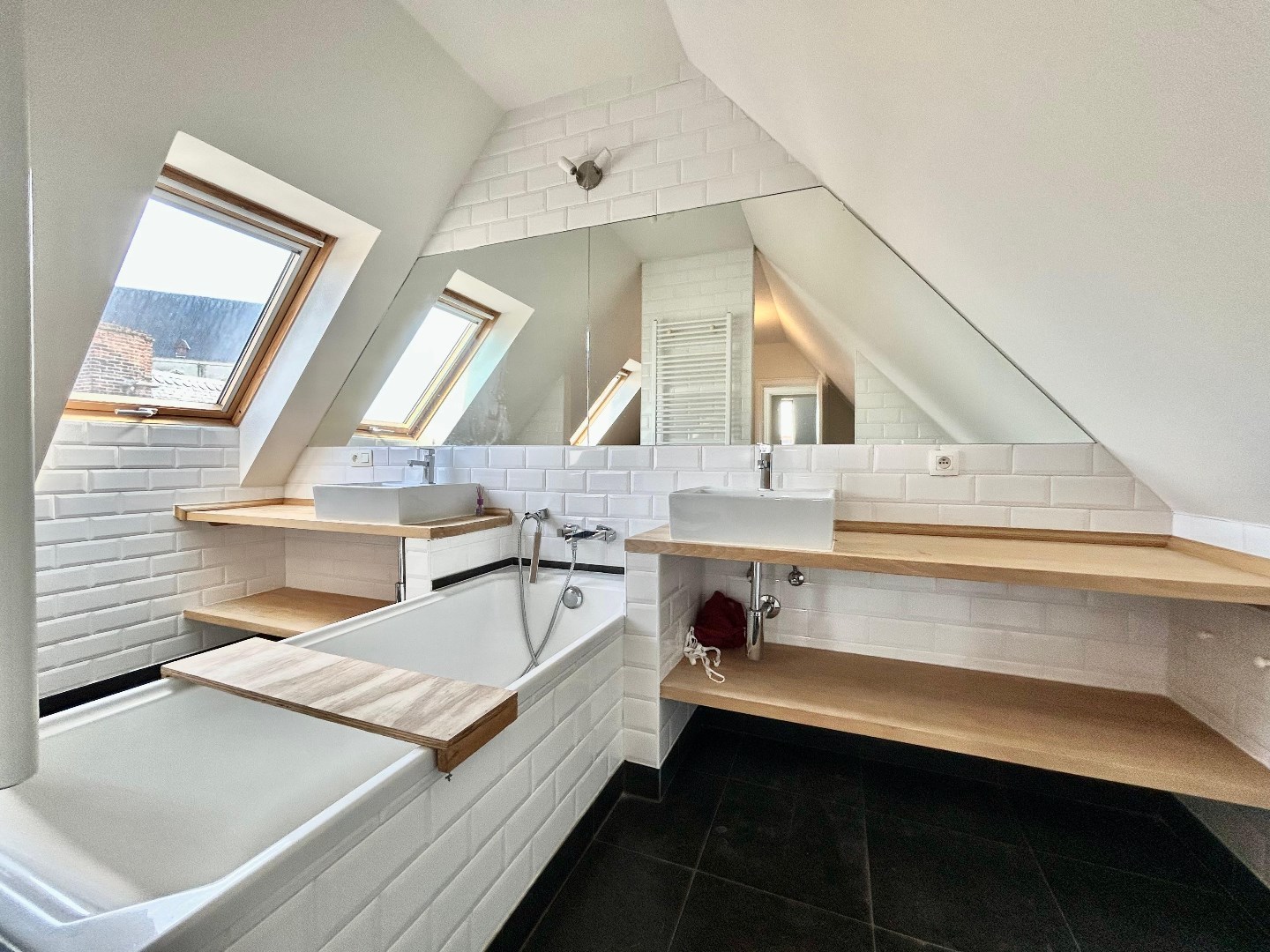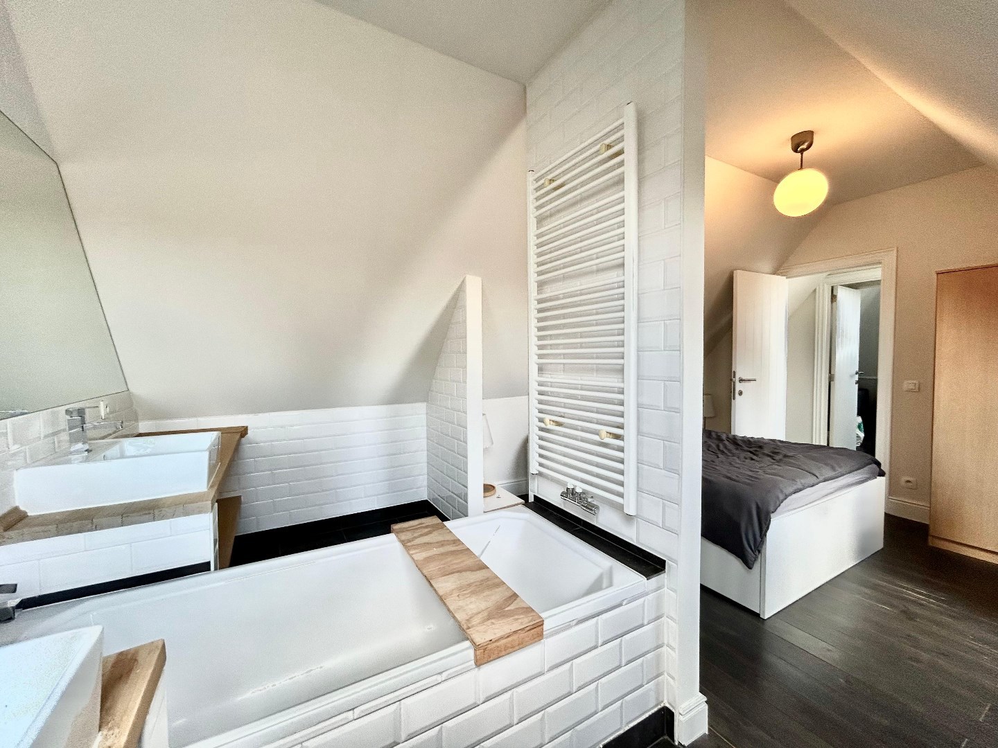 Boven vindt u ook nog een hele ruime slaapkamer met ensuite een mooie badkamer. Er is ook nog een derde kamer voorzien.