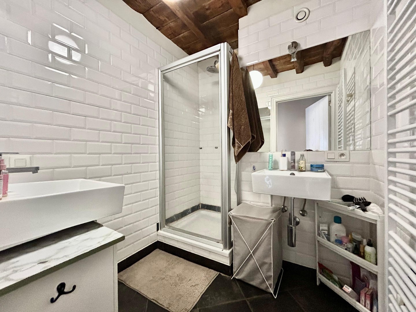 Deze duplex, ca. 116m² (volgens het EPC) biedt een ruime en lichtrijke leefruimte met open keuken. In de keuken vindt u een koelkast, kookplaat, dampkap en een grote wasbak! Aansluitend vindt u een ruime slaapkamer met een badkamer voorzien van lavabo en douche.