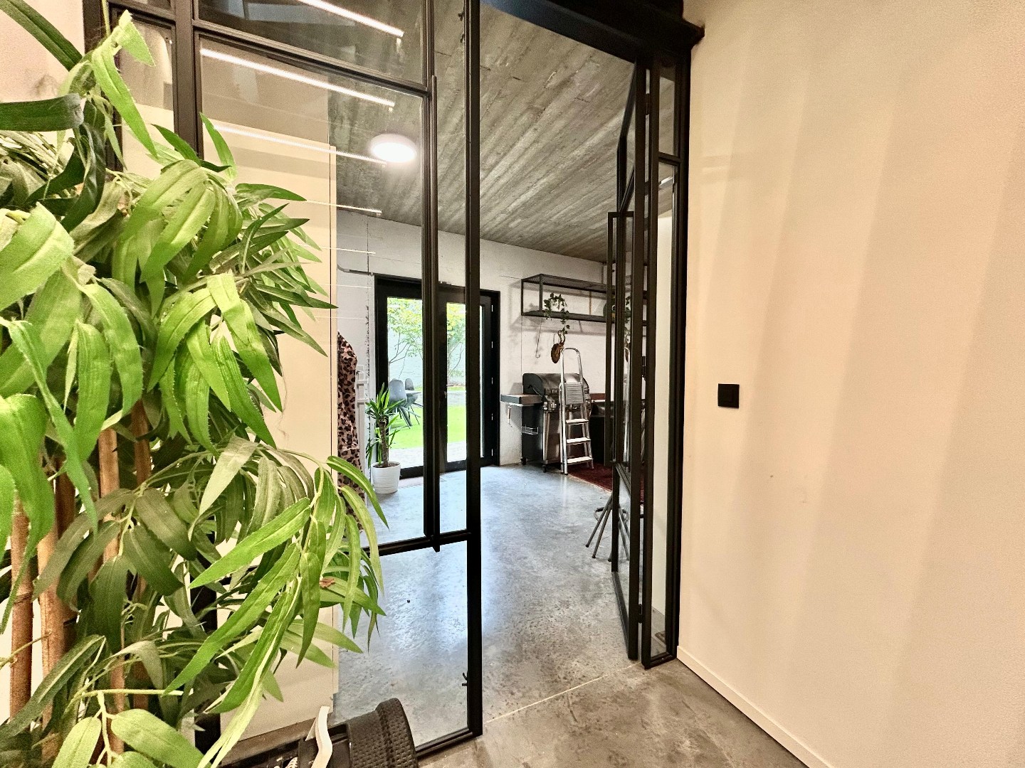 De woonst omvat op de gelijkvloerse verdieping een immens grote garage, plaats voor twee wagens en fietsen. Er is zelfs nog plaats voor hobbyruimte. Aansluitend vindt u een hele mooie verzorgde stadstuin.. Een spel tussen groen en bakstenen, in zijn eenvoud, waar u tot rust kan komen.