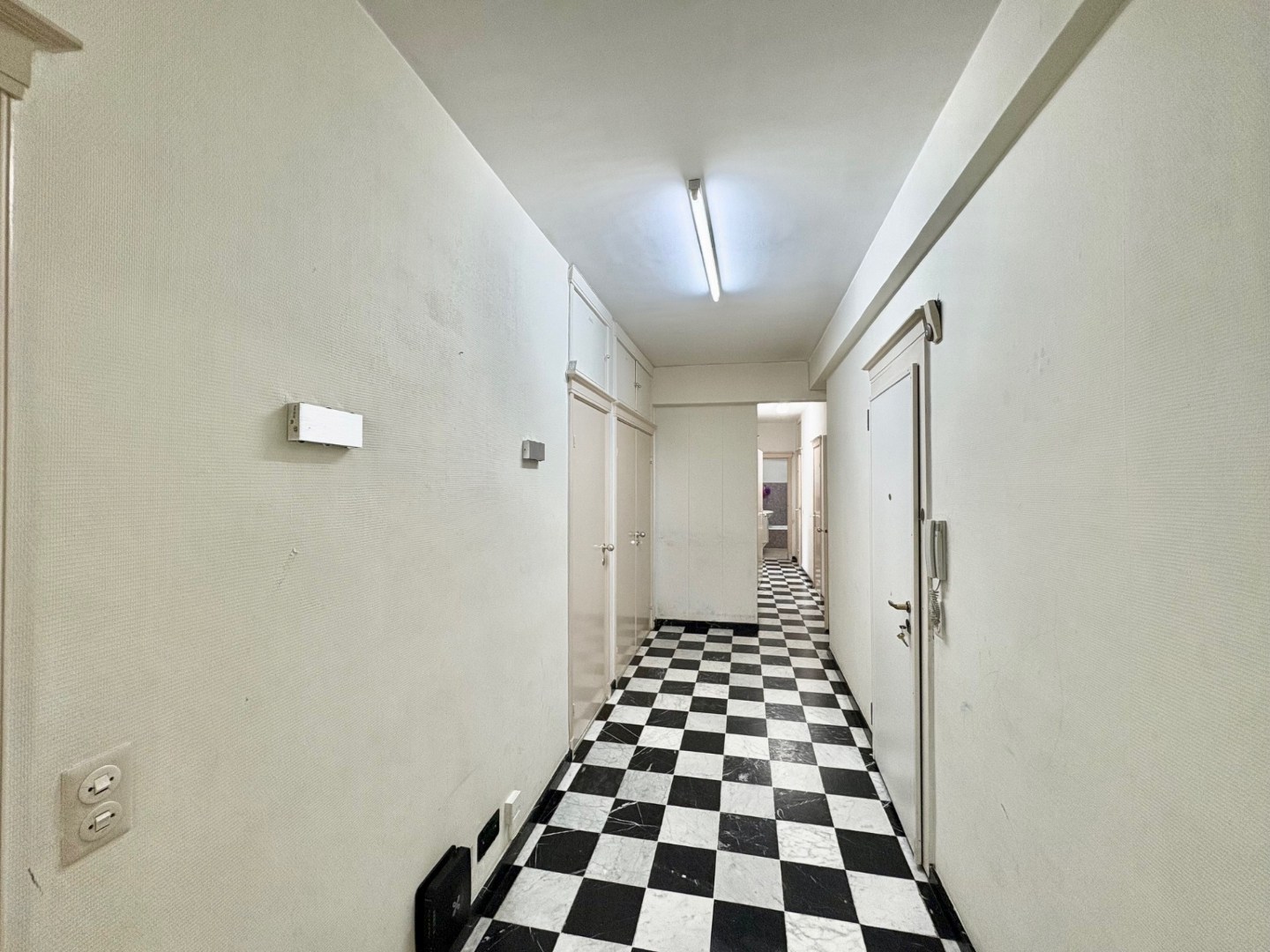 Op de 7de verdieping van het gebouw aan de Belgiëlei 73A (B701) bevindt zich dit ruime appartement van 115 m², dat veel potentieel biedt voor wie op zoek is naar een comfortabele woonst of een interessante investering. Het appartement beschikt over een lichte, ruime woonkamer die rechtstreeks aansluit op de keuken. Vanuit hier heb je toegang tot het gesloten kleine terras.