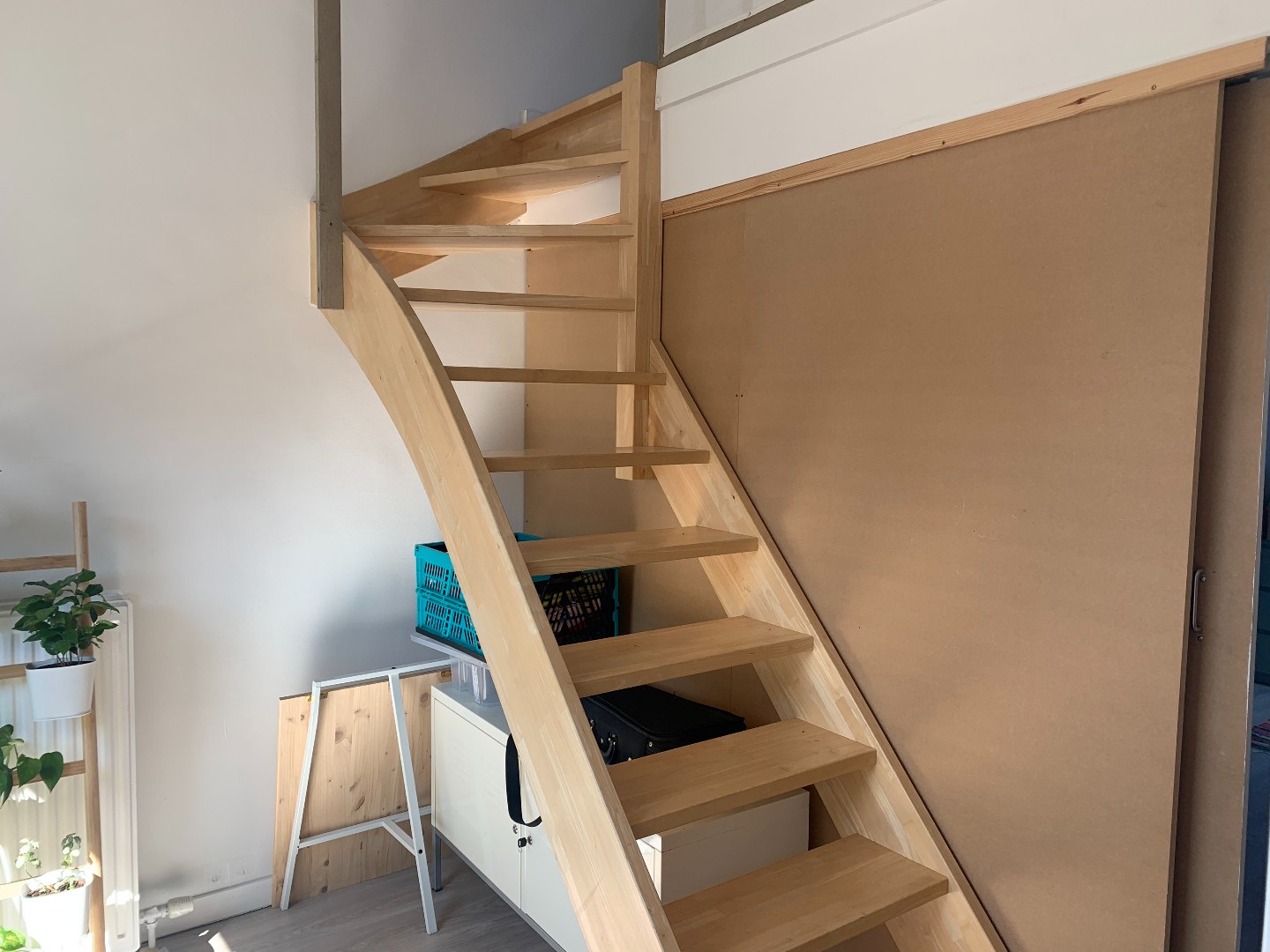 De bovenliggende verdieping bestaat uit een gezellig triplex. De eerste verdieping heeft een leefruimte met open, geïnstalleerde keuken.